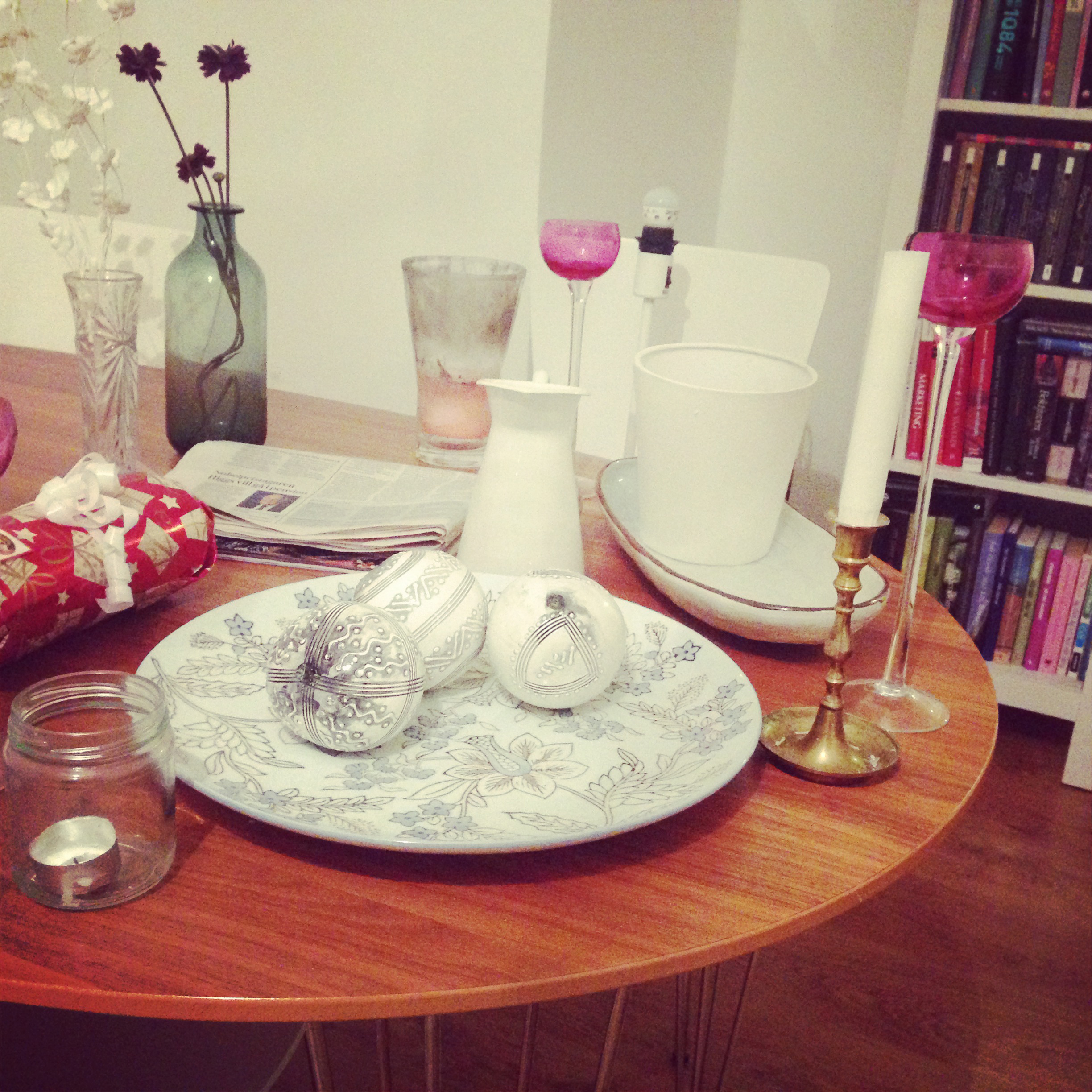 Vårt nyår var ganska lugnt, med matmängder som fick törsten efter nyårschampagnen att dämpas helt. Detta resulterade i att vi var två utvilade fåglar som vaknade på nyårsdagens morgon med en lust att ramma julen långt före Knut. Så, upp på vinden, ner med julkartongen, ner med julen och upp med våren! Det är en sådan härlig känsla att ersätta alla mustiga julfärger med skira våriga sådana i januariljuset.