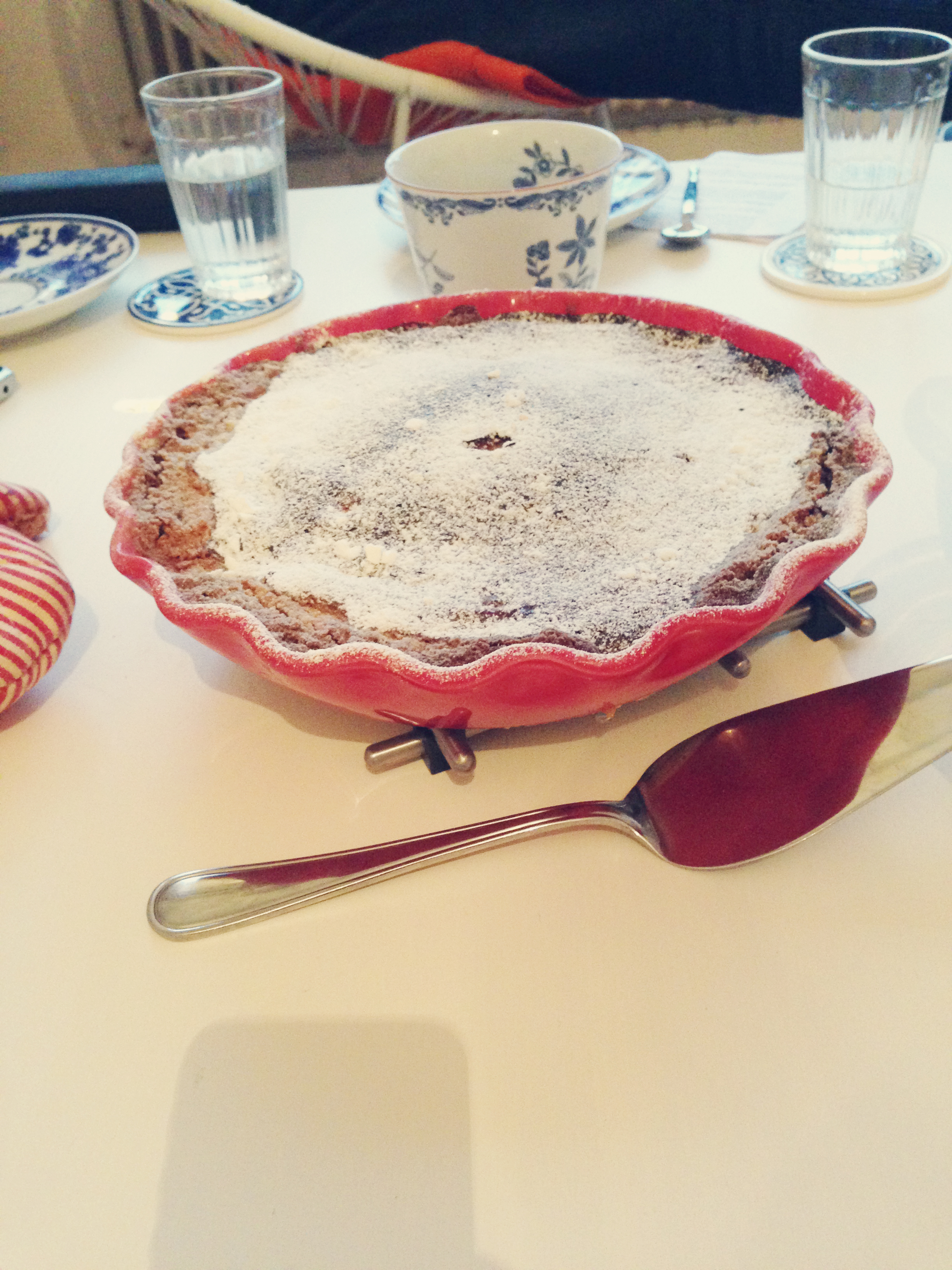 Efter den produktiva rundan i ett regnigt city kom vi hem och hade lite afternoon tea, till mammas stora förtjusning. Jag hade bakat fransk citronpaj (recept här) och serverade te ur min fina elefanttekanna.