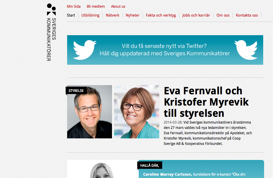 Sveriges Kommunikatörer är ett värdefullt nätverk som varje kommunikatör borde ha ett medlemsskap på. Skickat ut nyheter med tips på kurser (som oftast är gratis för medlemmar) och lediga jobb. För studenter är medlemskapet gratis.