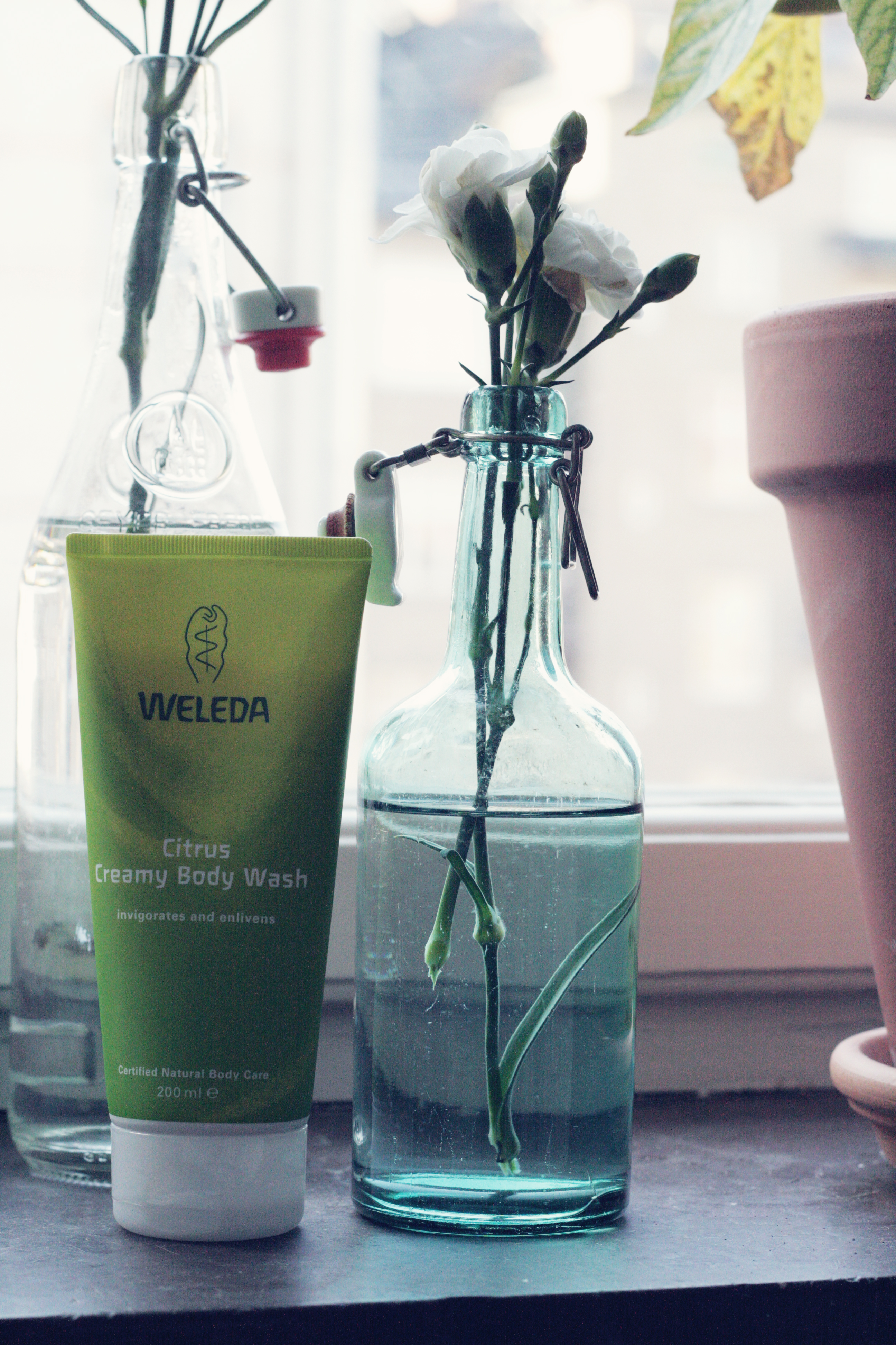 När jag skulle köpa ny duschkräm häromdagen hade jag Emma Sundhs och Sandra Beijers ”Här är ditt badrumsskåp” färskt i åtanke. Tycker för övrigt att det är ganska häftigt hur tankarna kring hållbart leverne utvecklas hela tiden – från mat och att spara el till att även tänka på kläder, skönhetsprodukter och inredning. När jag stod där med ett av mina vanliga duschtvålsmärken i handen hejdade jag mig alltså ganska snabbt och började tänka på vad jag har i mitt badrumsskåp. Valde därför att gå det lite dyrare hållet och köpa en duschtvål från Weleda, som är ett märke som är känt för att göra organiska och naturliga produkter. Valde så klart citrusdoften, citrusmissbrukare som jag är. Den känns helt annorlunda från vanlig tvål, väldigt krämig och den doftar verkligen nypressad, färsk citron.