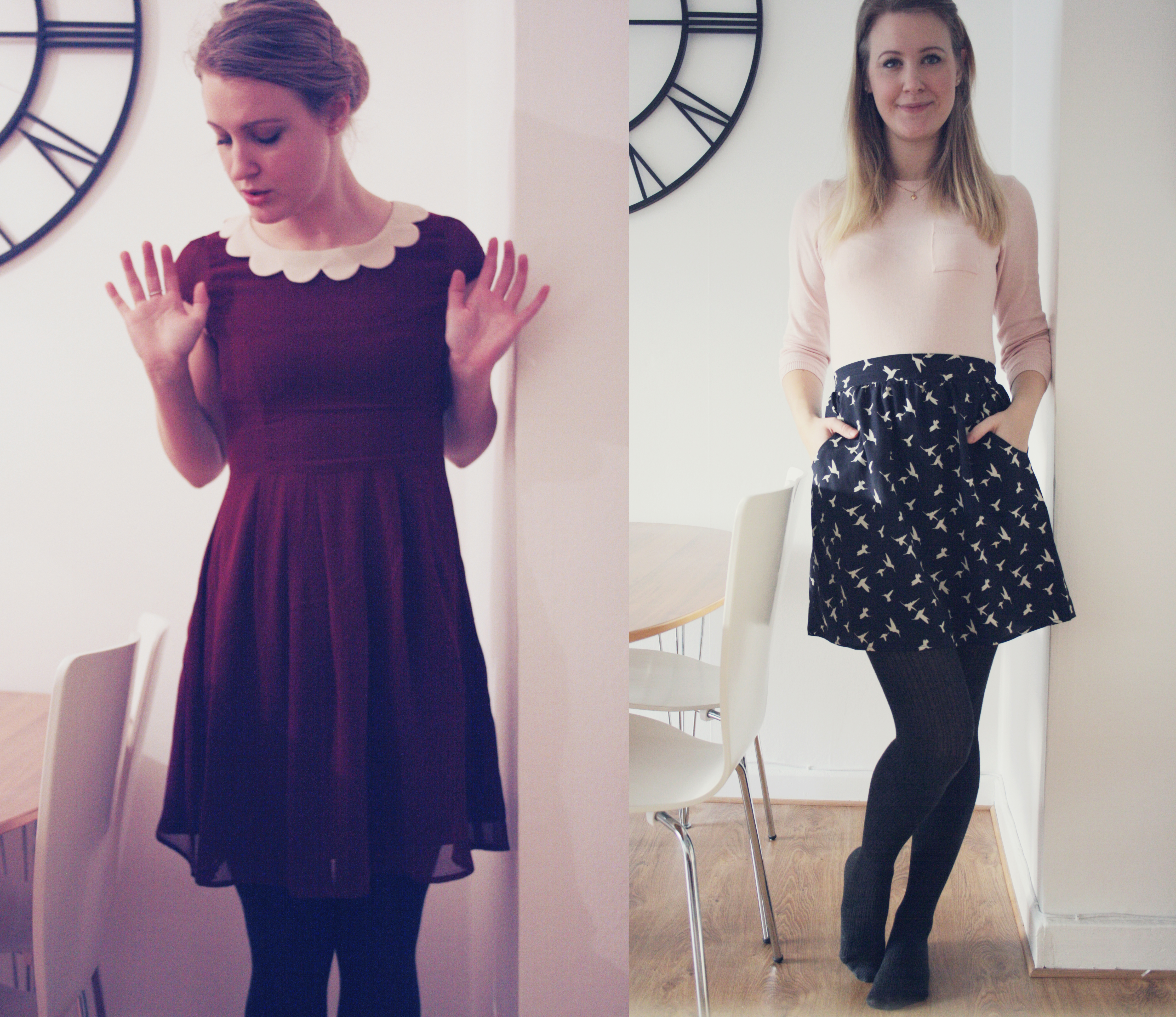 I januari anlände Modcloth-klänningen som jag egentligen hade beställt till julafton. Det gjorde inte så mycket, men oh my vad mycket jag älskar den här klänningen! Molnig krage, perfekt längd och perfekt vinröd. I februari tyckte jag att det var dags att börja fasa ut vinterfärgerna och klädde mig till exempel i jordgubbs- och blåbärsglass.