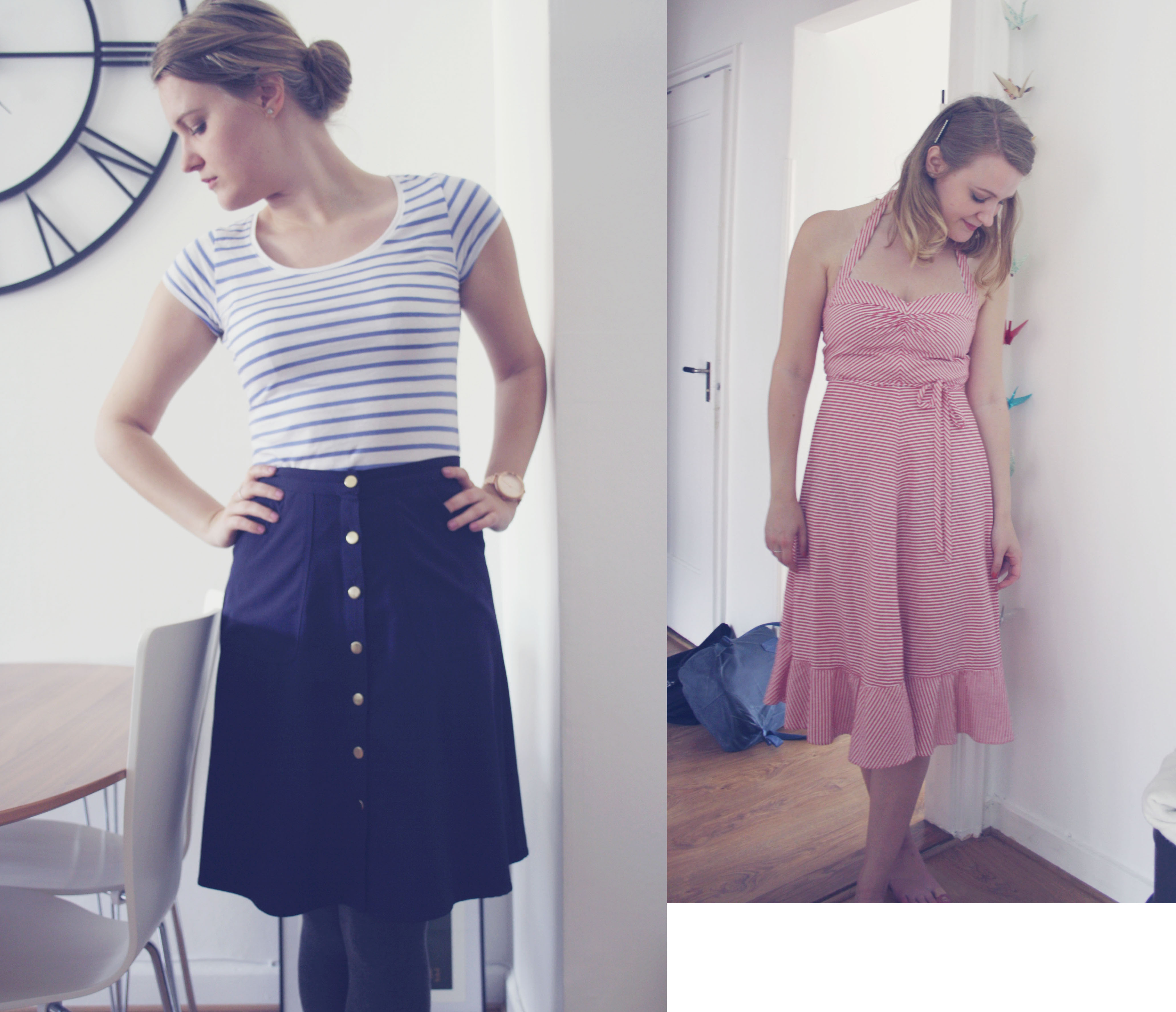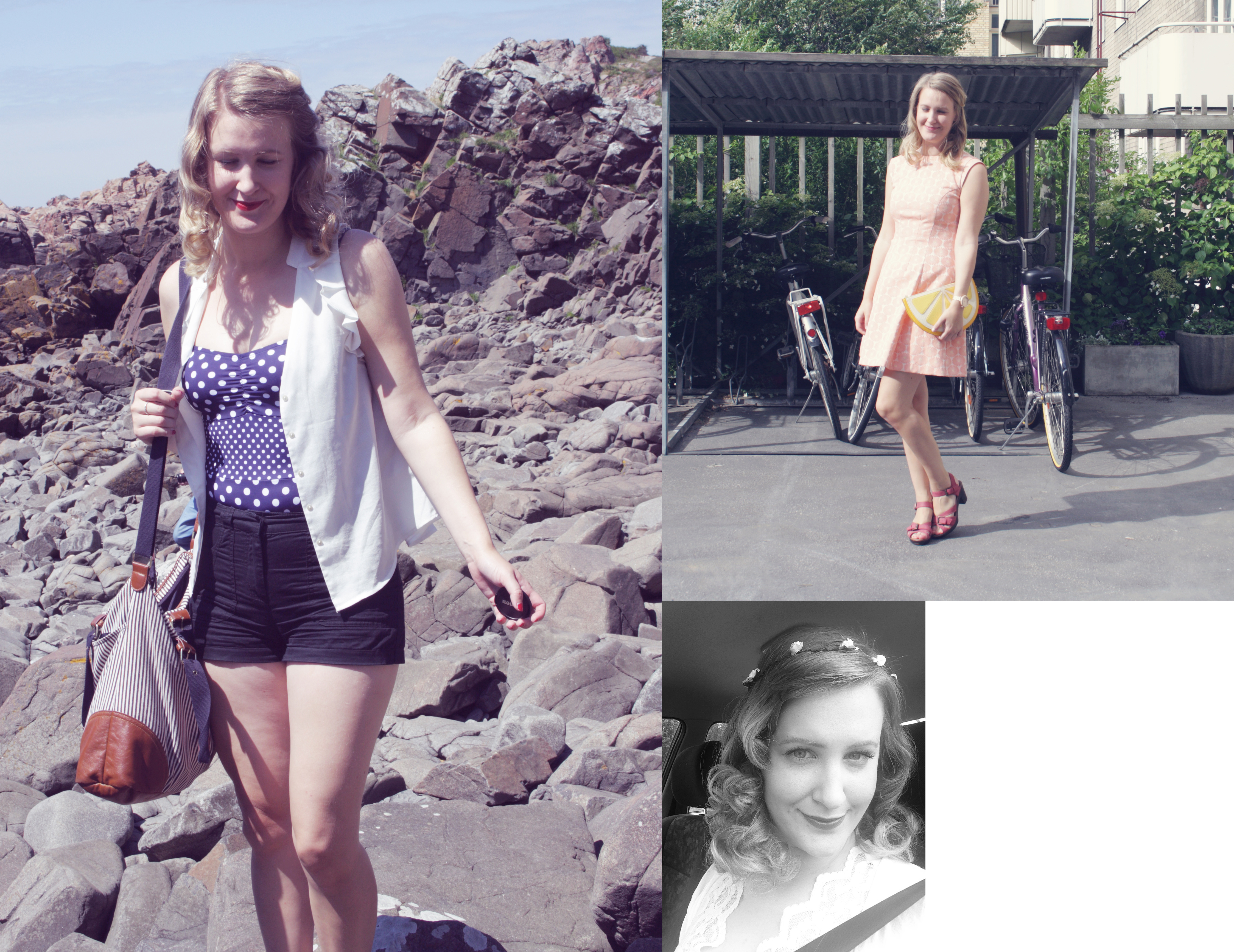 Titta åt vänster, titta åt höger. Sportade under maj sidoblicken för det mesta, och månaden ackompanjerades även av varmt väder och olika nyanser av blått. Fick också hem en underbar polkagrisrandig klänning som jag budade hem på den stora Vintagebloppisen och av den forne ägaren Emma Sundh. Känslan när paketet öppnats och den satt som gjuten på min kropp ❤ Tusen tack Emma, är så otroligt glad för denna karamell!