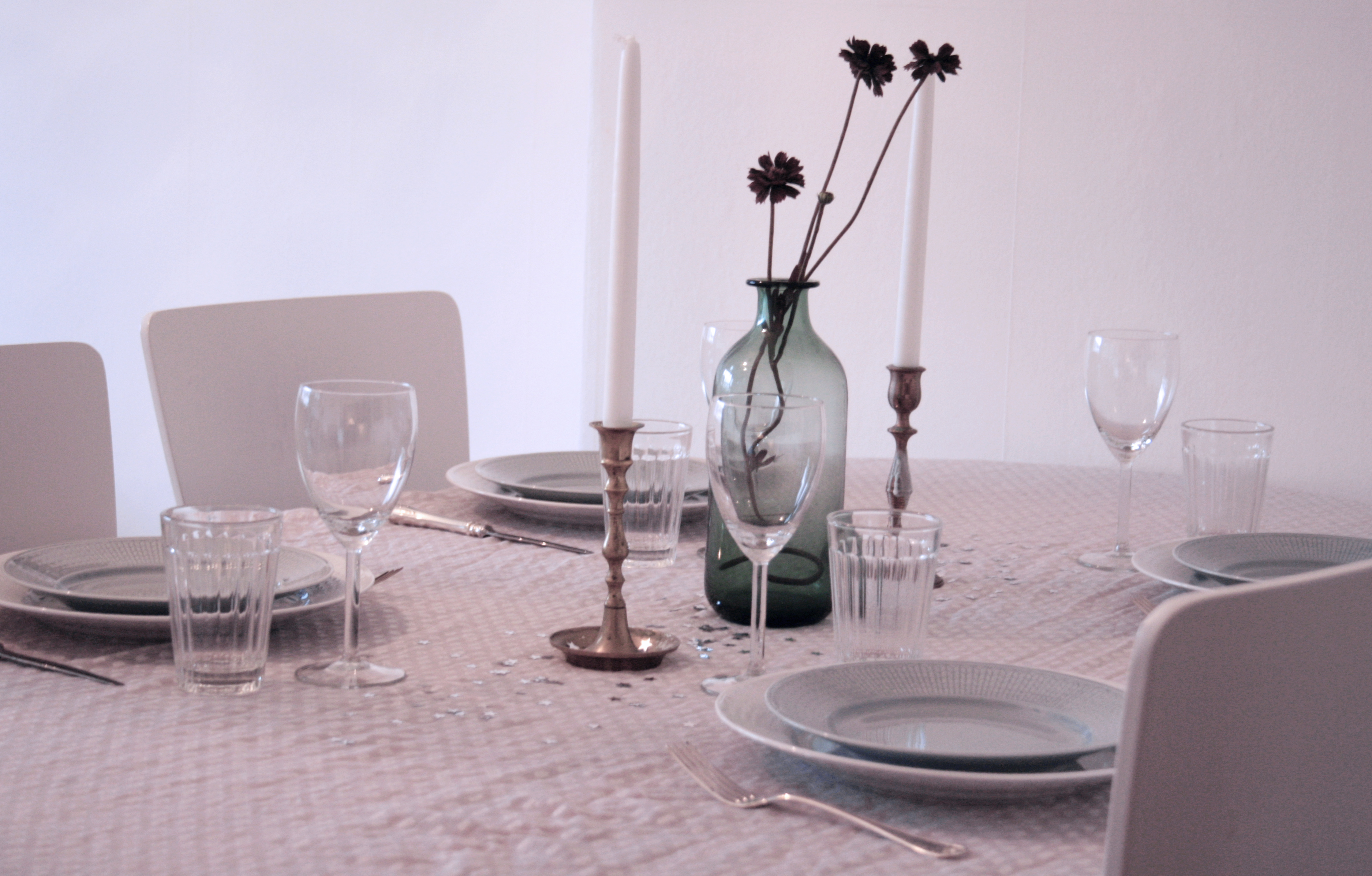 Efter en rätt så lång morgon och en skön dusch tog jag itu med bordsdukningen, som blev nyårig med ett gäng festliga stjärnpaljetter ☆ ☆ ☆