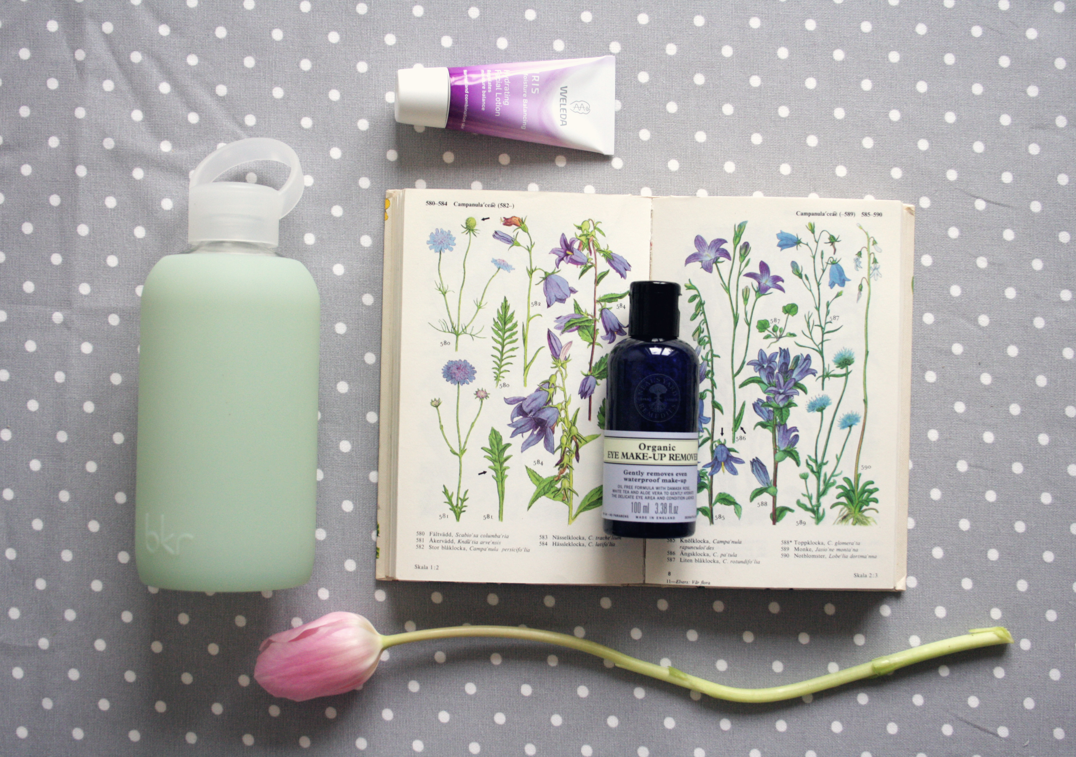 Nästa grej är egentligen två, nämligen mina nya ekologiska hudvårds- och skönhetsprodukter. Försöker sakta men säkert att fasa ut allt i badrumsskåpet som är dåligt för både mig och våra vattendrag, och två nya favoriter är en ansiktskräm för torr hud för Weleda och en makeup- remover från Neil’s Garden. Min förra makeup- remover bar varningstexten Undvik kontakt med ögonen, vilket kändes mycket märkligt för en ögonprodukt. En kanske inte ska hälla den här removern i ögonen heller, men den känns inte alls lika läskig att använda.