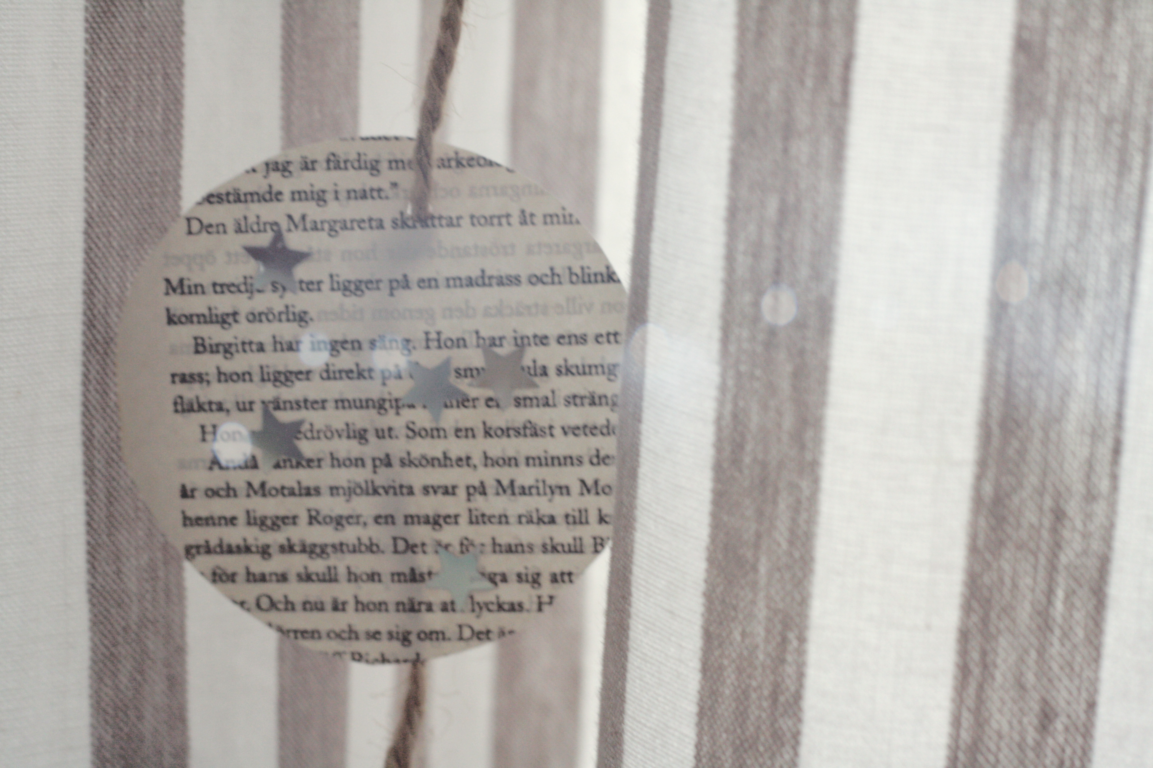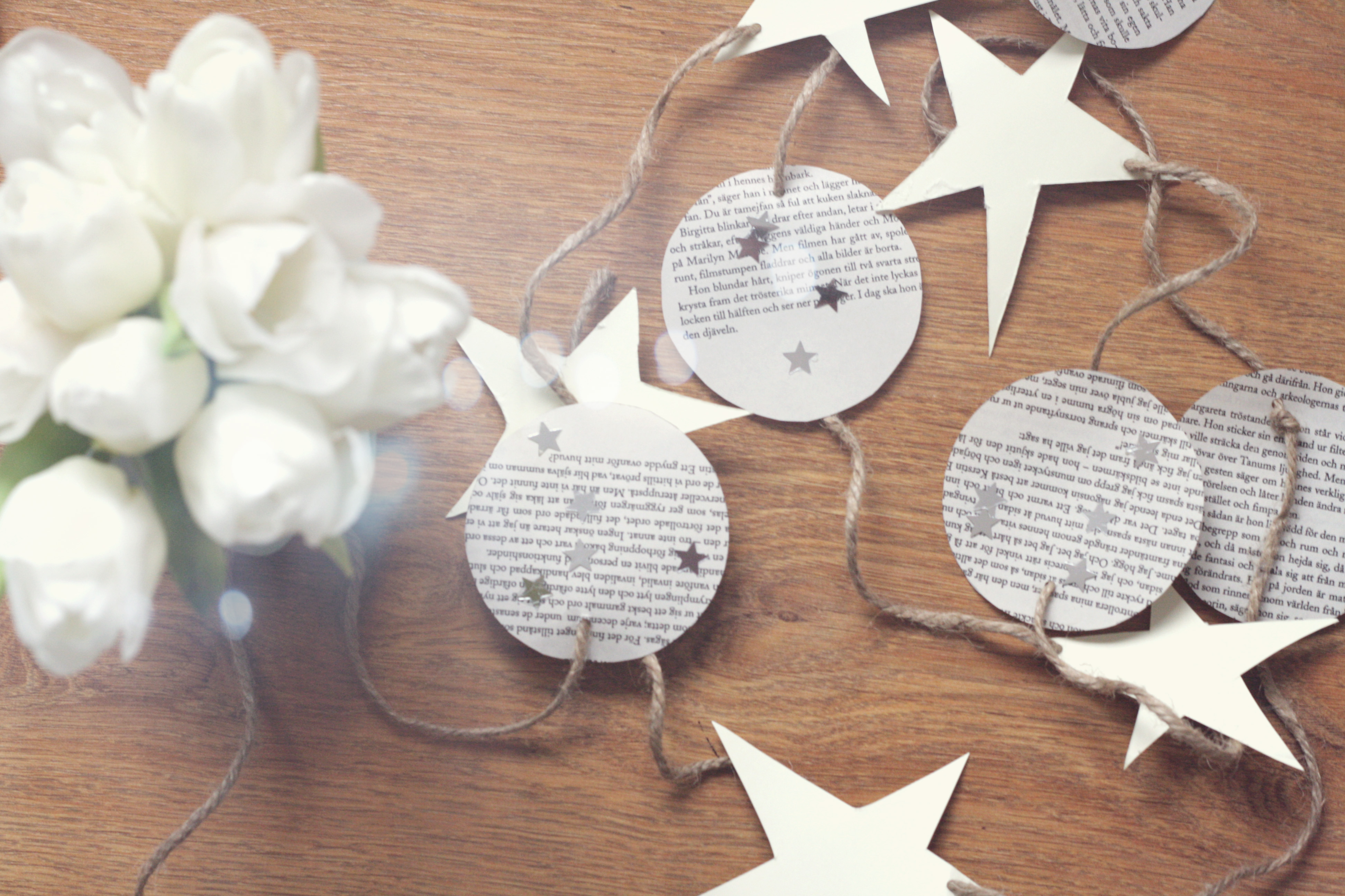 Lampskärmspappret fick bli till stjärnor, och en gammal pocket som jag inte tyckte så värst mycket om fick tjäna som cirklar, prydda av överblivna stjärnpaljetter från nyår.