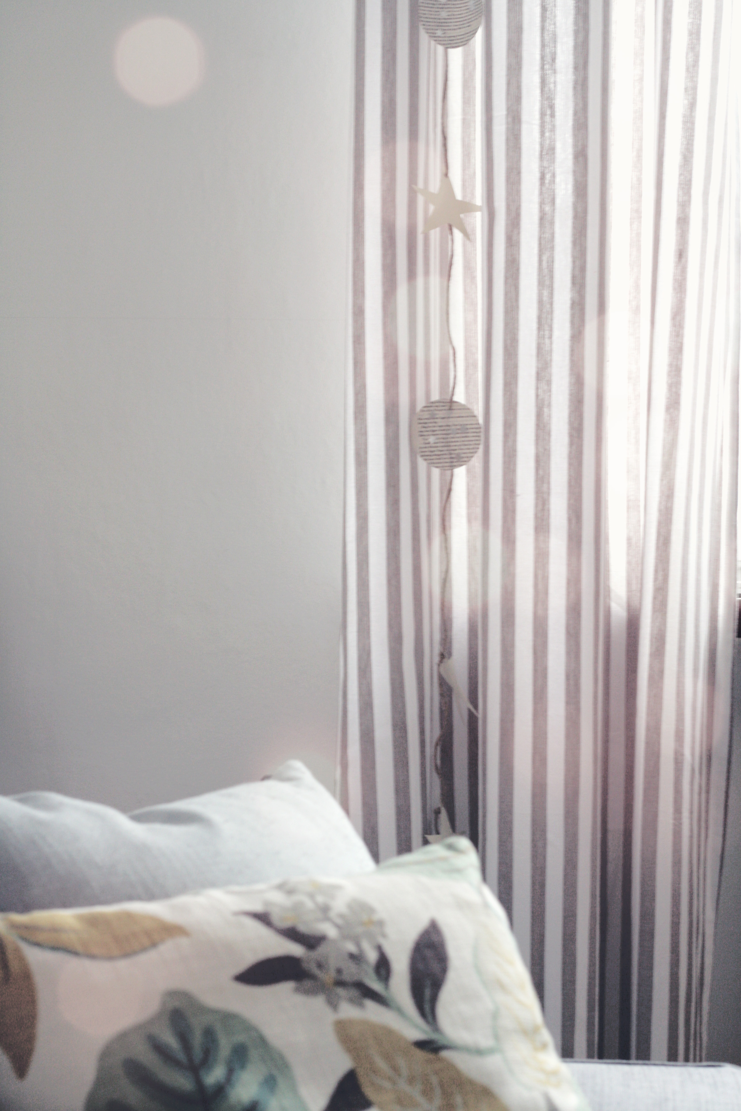 Ännu en girland! Lovar lovar, sista som jag kan ha härhemma utan att det blir girland-paradise. Hade länge haft en tanke om att göra en stjärngirland att hänga längs den ena gardinen i vardagsrummet. Gardinerna är så väldigt randiga och det kändes som att de behövde brytas av lite i sin randighet.