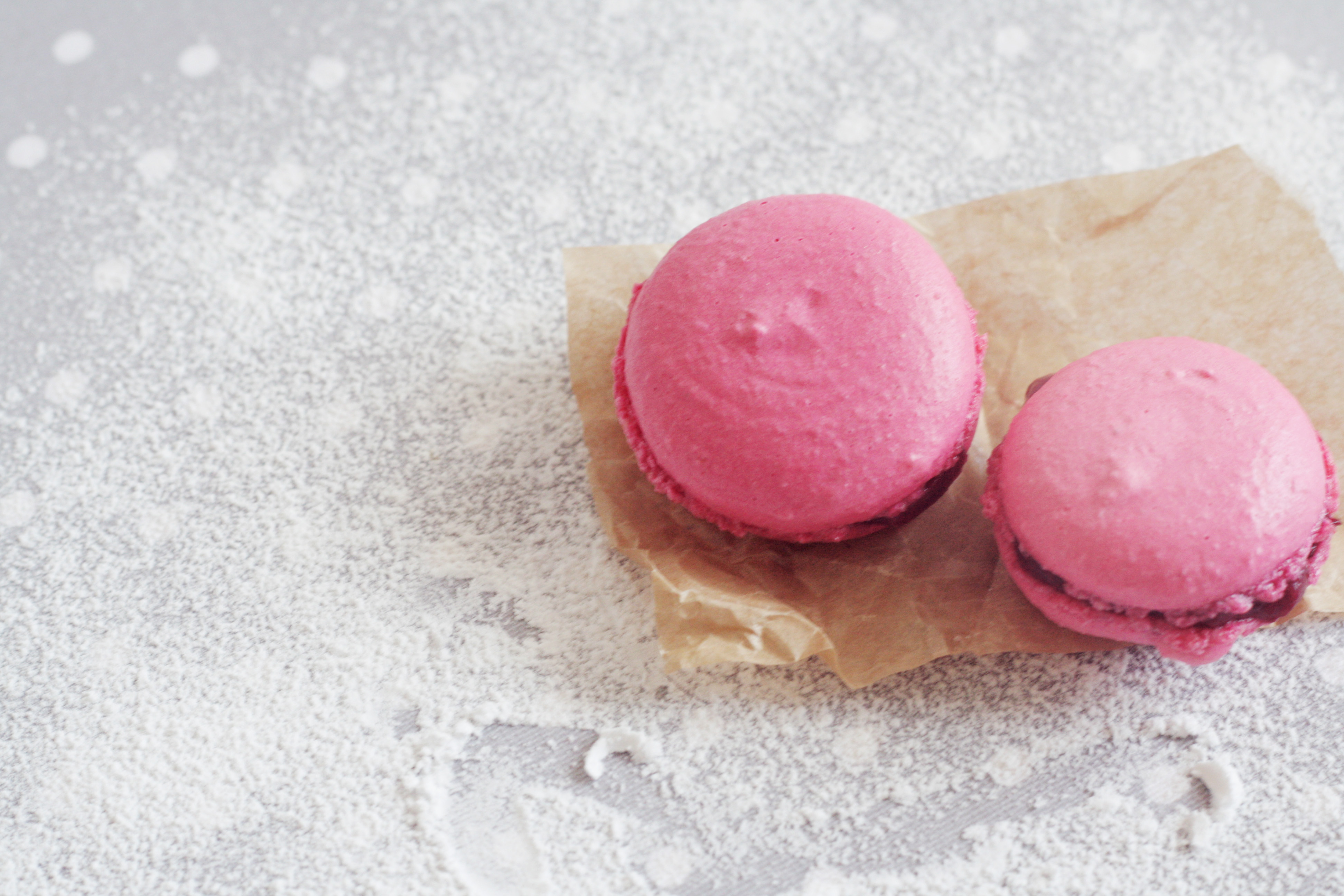Receptet för dessa macarons kommer från en bok jag har, men tillvägagångssätt och recept är i princip detsamma överallt (exempelvis här). Tycker verkligen inte att de är så knepiga att göra, enda gången jag misslyckats var när jag testade en ingrediensmix, och dessutom ganska roliga att skapa – och att få äta, såklart.