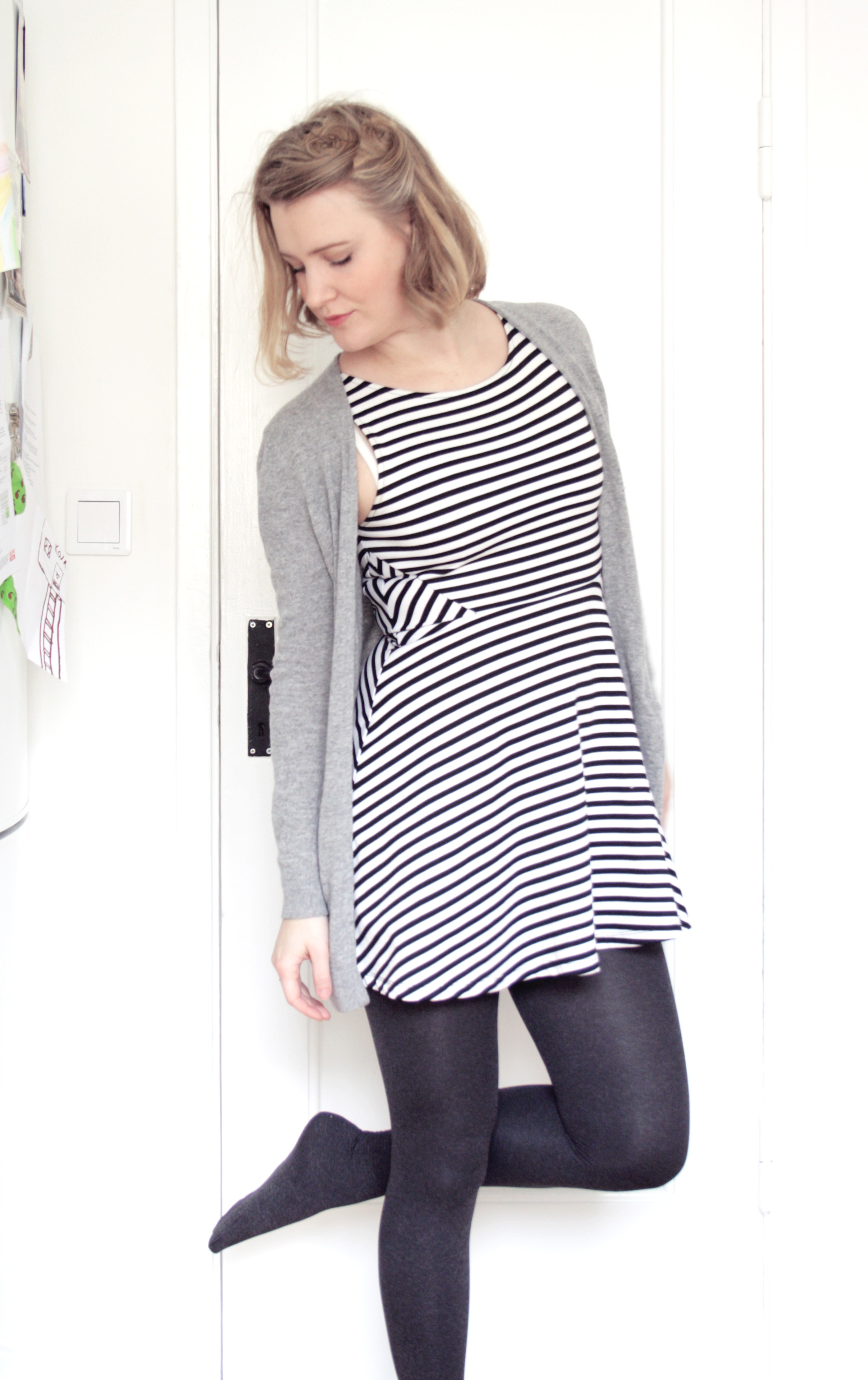 Men åh vad ljust det var igår! Det här är lunchtid i köket, inget grådask här inte! Just nu har jag en så enorm klädtorka känns det som, det är inte mycket i garderoben som jag är kompis med för tillfället. Den här klänningen är jag lite kompis med, så den fick hänga med på en ganska så fullspäckad onsdag. Från H&M i somras. Koftan är jag väldigt bra kompis med, en i kashmir som även den är från H&M.