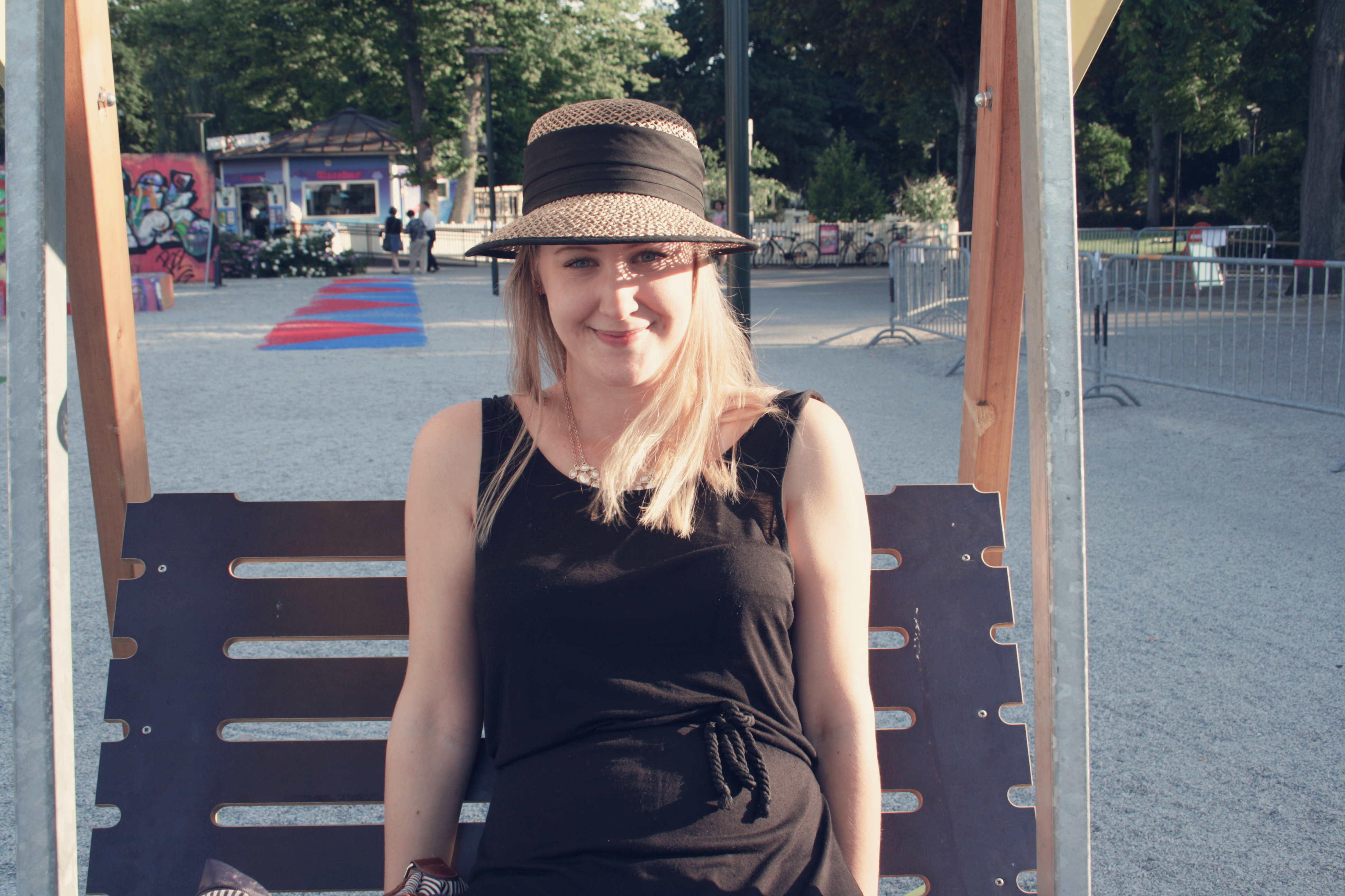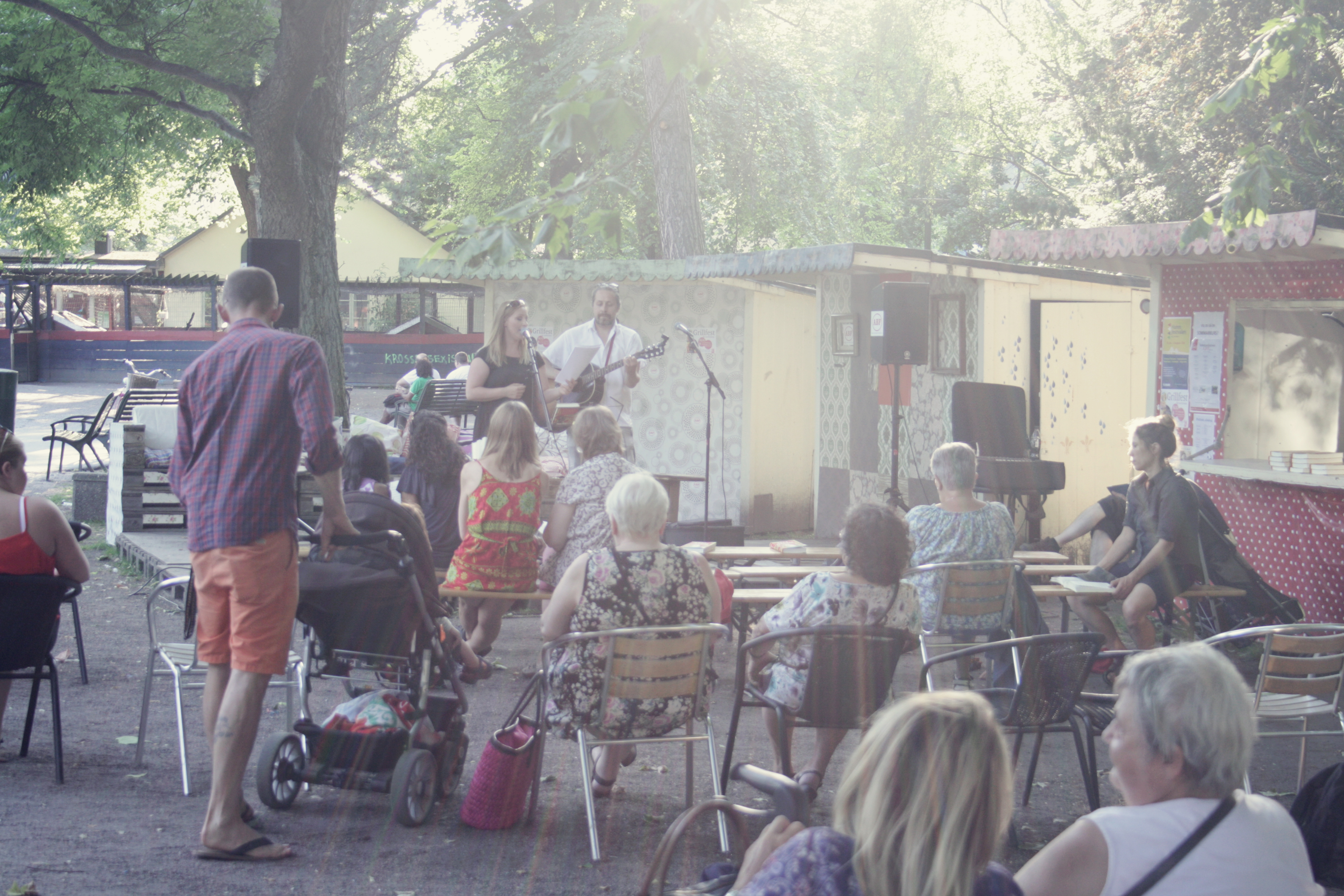 Med en varsin glass i handen strosade vi, efter en svidande förlust, runt parken, stannade för att lyssna lite på politisk allsång och för att njuta lite på en gungbänk.